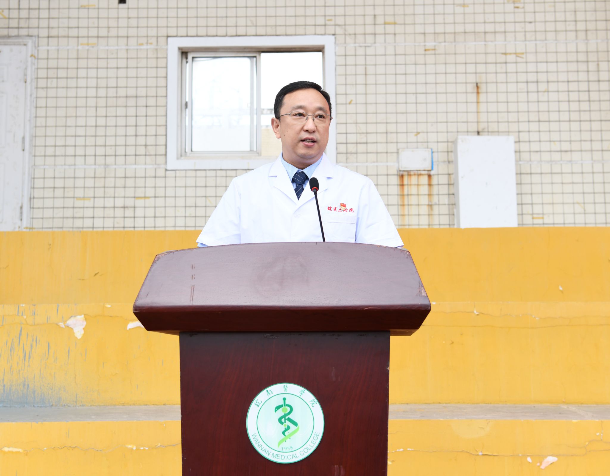 党委副书记、院长姚应水代表学校向全体2025级新同学致以热烈的欢迎和诚挚的祝贺。他指出,同学们在中国人民抗日战争暨世界反法西斯战争胜利80周年特殊时刻入学,更应铭记历史、传承精神,从中国共产党百年奋斗史和抗战胜利的宝贵经验中汲取智慧和力量,深刻体悟医者担当与家国情怀。
