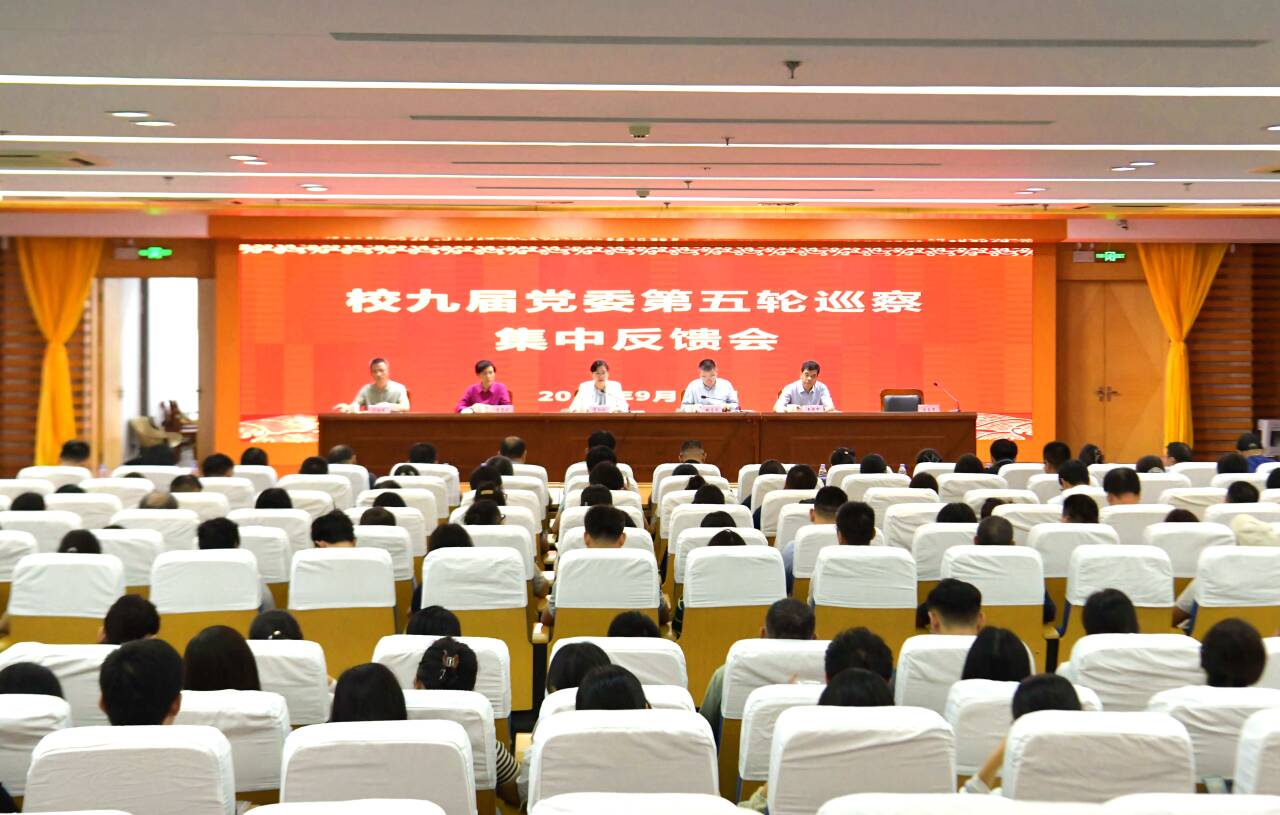 9月18日下午,学校在图书信息楼报告厅召开九届党委第五轮巡察集中反馈会。党委书记夏劲松出席会议并讲话。党委副书记、院长姚应水主持会议。党委副书记贾贤燕,党委常委、纪委书记、监察专员王保中,党委常委、副院长余结根出席会议。