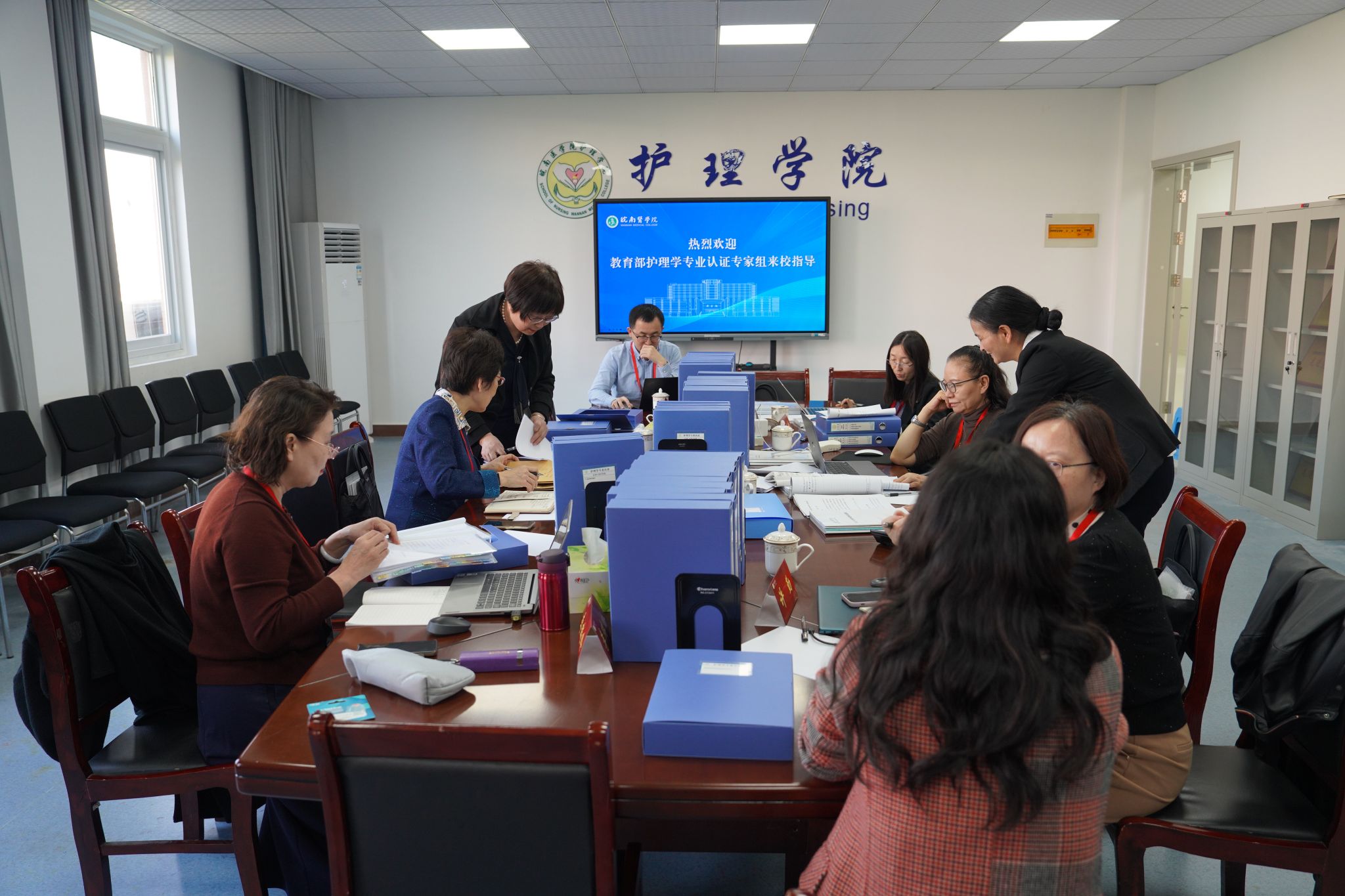 根据教育部教育质量评估中心统一部署,11月4日至7日,教育部护理学专业认证专家组一行6人,对我校开展护理学专业认证现场考察工作。专家组由海军军医大学姜安丽教授任组长,西安交通大学李小妹教授任副组长,河南大学李瑞玲教授、首都医科大学杨芳宇教授、南京医科大学许勤教授为成员,西安交通大学杨磊副教授任专家组秘书。