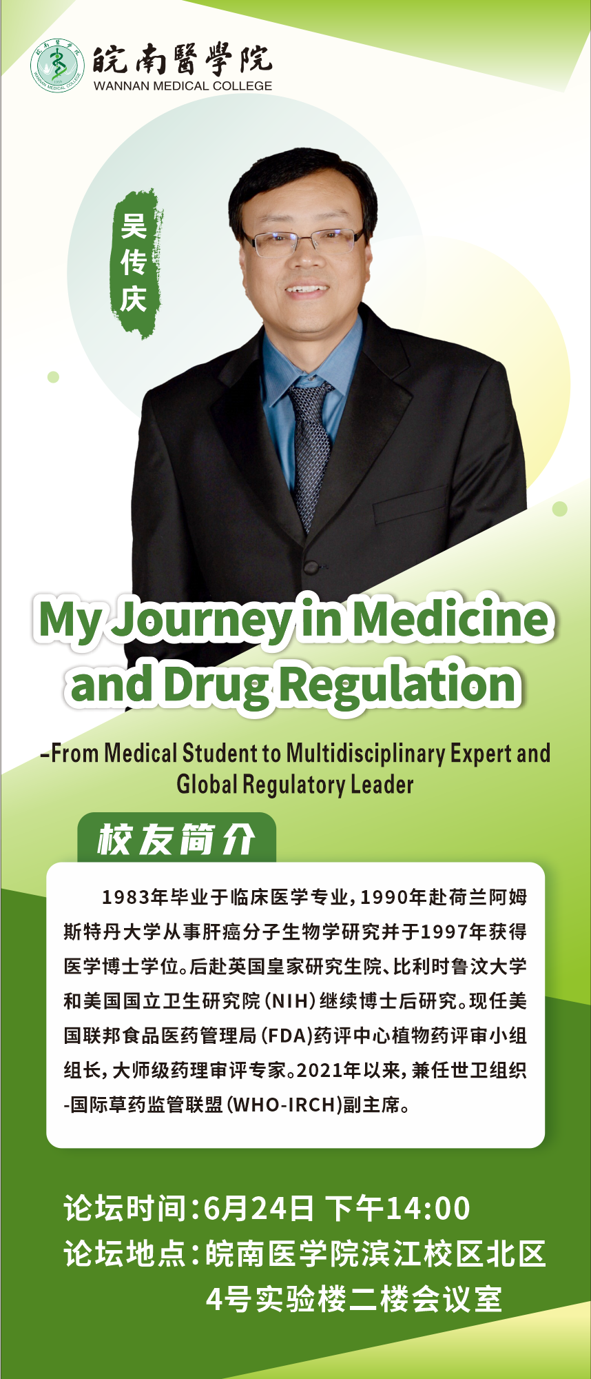 第十二期“校友论坛”:My Journey in Medicine and Drug Regulation-from Medical Student to Multidisciplinary Expert and Global Regulatory Leader